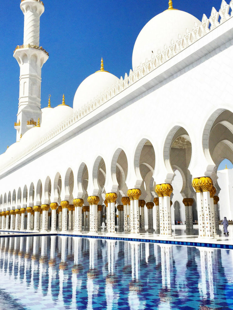 Le deuxième jour, nous sommes arrivés à Abu Dhabi, une ville que je n'avais pu explorer qu'une seule fois il y a deux ans. Nous sommes arrivés tôt le matin et je n'ai pas perdu de temps pour monter dans un taxi et me diriger directement vers la Grande Mosquée. Lors de ma précédente visite, je n'ai pas pu entrer dans la mosquée car j'étais à Abou Dhabi pendant le Ramadan – le neuvième mois du calendrier islamique, que les musulmans du monde entier observent comme le mois de jeûne. Les images en disent plus que les mots, je vous laisse donc le soin de décider si vous placerez cela sur votre liste de choses à faire – même si je vous le recommande vivement ! C'est de loin l'un des sites religieux les plus impressionnants que j'ai eu le plaisir de visiter. Sachez qu'un code vestimentaire strict s'applique. Cependant, si vous n'êtes pas correctement couvert (en particulier les femmes doivent se couvrir la tête, les poignets et les chevilles), il existe une autre option : louer une abaya gratuitement. Après la mosquée, j'ai passé l'après-midi à l'Emirates Palace à prendre un thé dans le cadre de l'une des excursions à terre organisées à l'avance avec la compagnie de croisière.
